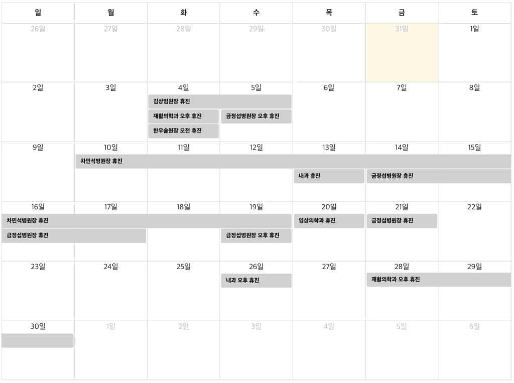 재활의학과11/4 오후 휴진11/28-30 휴진