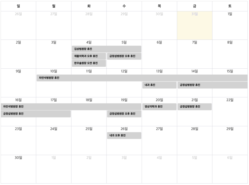 금정섭병원장 11/5, 11/19 오후휴진11/14-17, 11/21 휴진