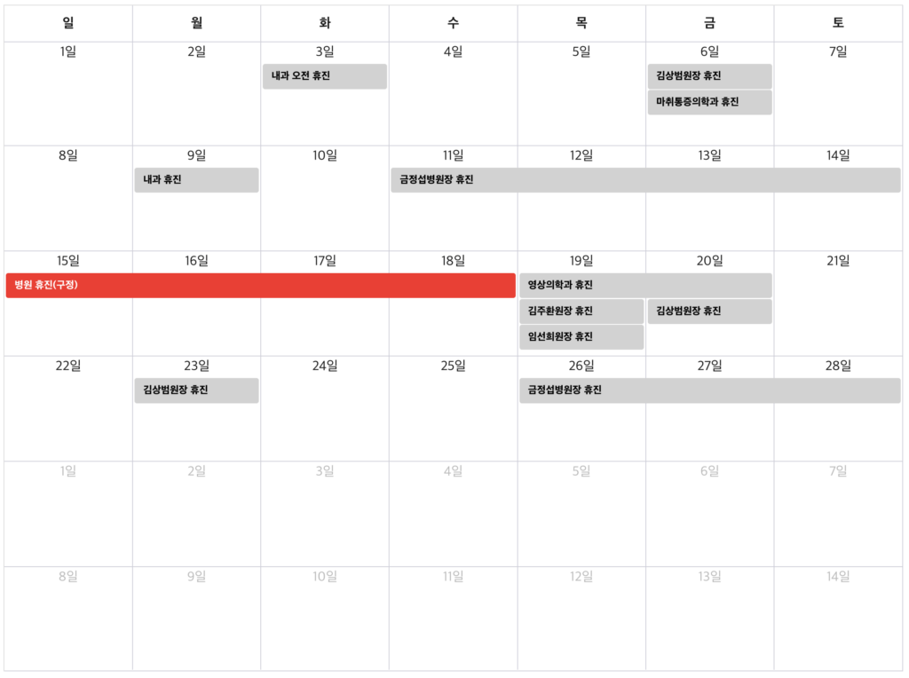 2/6 휴진, 2/20 휴진, 2/23 휴진