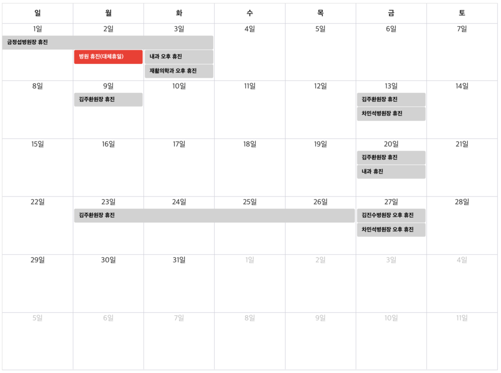 김주환원장3/9, 3/13, 3/20, 3/23-26 휴진