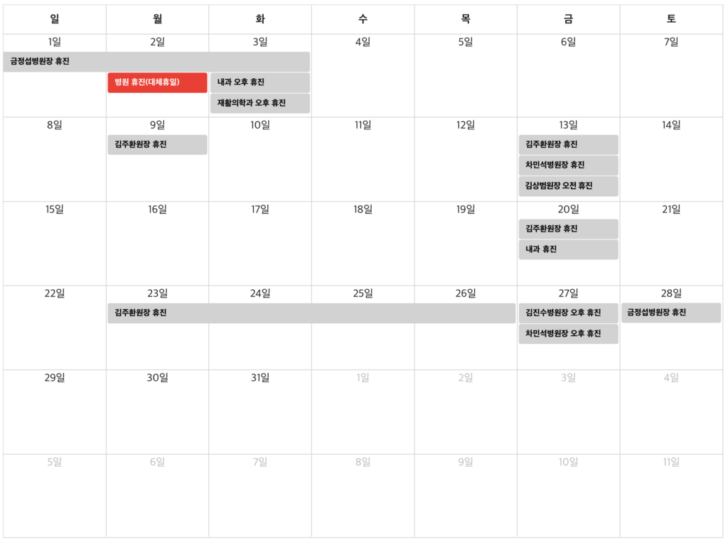 3/9, 3/13, 3/20, 3/23-26 휴진